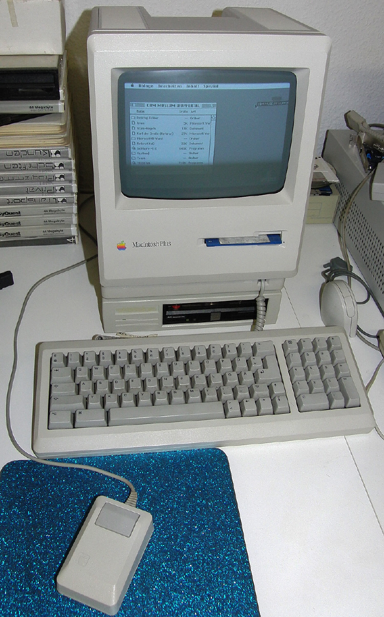 Nicht der allererste MAC aber sein direkter Nachfolger. Bei uns in leicht getunter Version, mit etwas mehr Arbeitsspeicher und einem Syquest Laufwerk im Einsatz. In Kombination mit dem Syquest Laufwerk nutzen wir den Rechner, um Apple Disketten zu archivieren oder zurück auf Diskette zu schreiben. Darüber hinaus wird auch dieses Gerät für Vorführzwecke verwendet. Hierbei handelt es sich um ein Spendengerät.